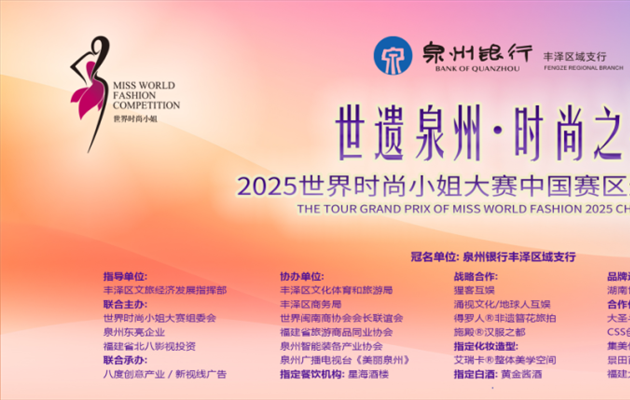 查看詳情 +當(dāng)千年世遺古城邂逅國(guó)際時(shí)尚浪潮,一場(chǎng)文化與美學(xué)的碰撞在泉州璀璨綻放。2025年世界時(shí)尚小姐大賽中國(guó)巡回賽·泉州站于6月3日-4日盛大舉辦,黃金酒業(yè)股份有限公司憑借醇厚綿柔的卓越酒質(zhì),榮膺賽事「指定白酒品牌」,...